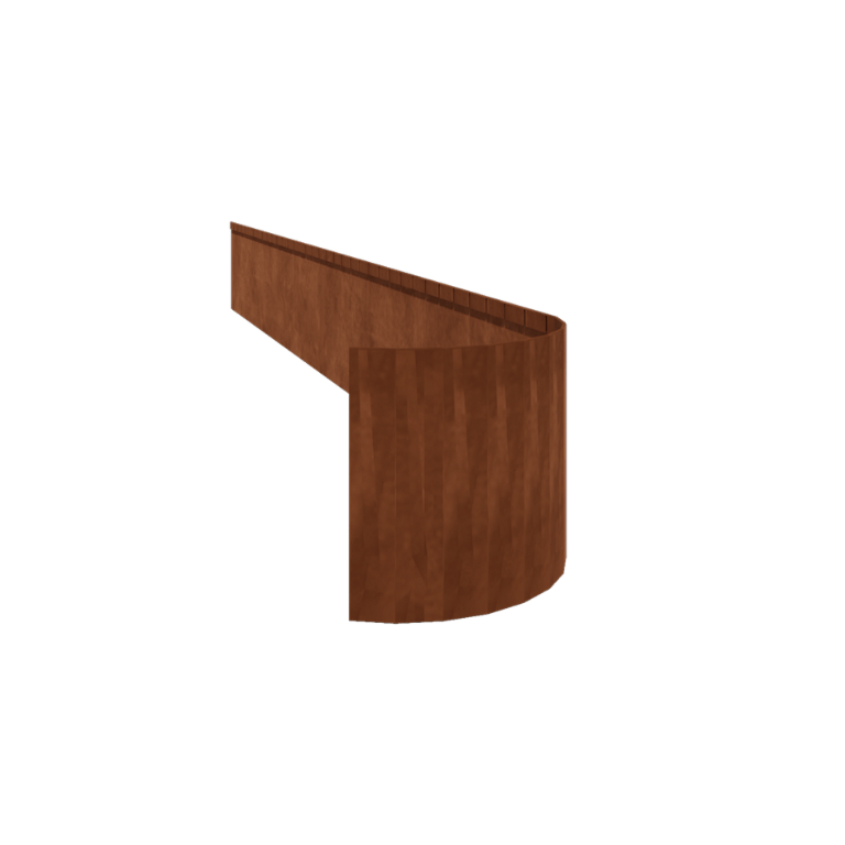 Denne bedkant er lavet af højkvalitets cortenstål, som beskytter sig selv ved at danne et tæt rustlag, der forhindrer yderligere korrosion. Rusteprocessen starter inden for få uger til måneder, hvor en varm orange-brun farve opstår. Det kan tage 1 til 2 år, før rustprocessen er fuldt gennemført. Du kan fremskynde denne proces med MySteel rostrusker.