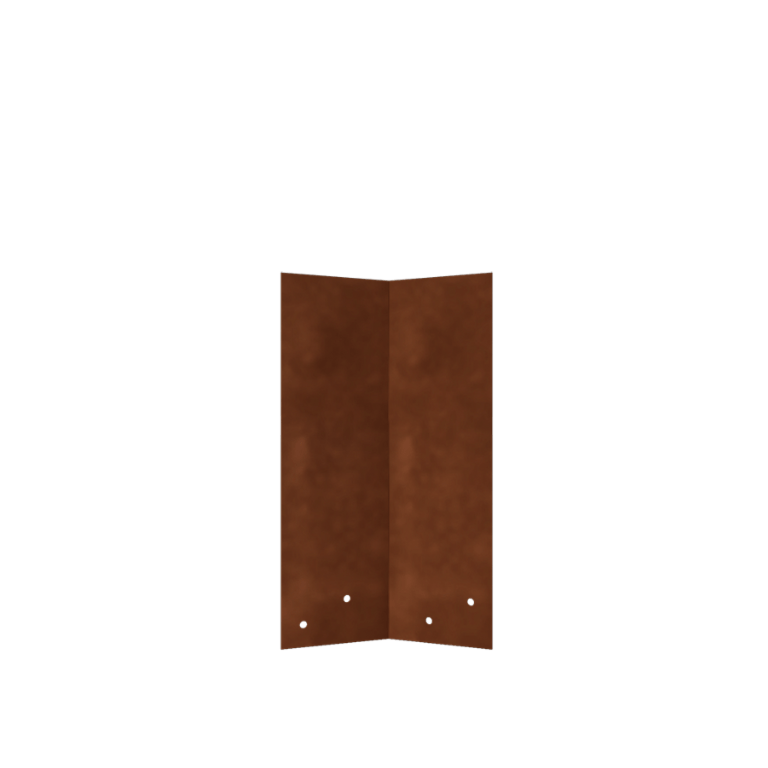 Denne koblingsplade er fremstillet af høj kvalitet Corten-A stålplade. Denne metallegering har den unikke egenskab, at den danner en meget tæt oxidhinde (rustlag). Gennemrustning er derfor umulig. Den tætte oxidhinde beskytter det dybere liggende materiale mod ilt, hvilket stærkt forsinker oxidation, mens korrosionen fortsætter. Koblingspladen leveres ubehandlet i den grå metalfarve. Rustprocessen starter inden for de første 2 måneder, og der er ingen behandling nødvendig. Under rustprocessen kan kantstenen afgive. Cortenstål er en metallegering bestående af jern, tilsat kobber, fosfor, silicium, nikkel og krom.