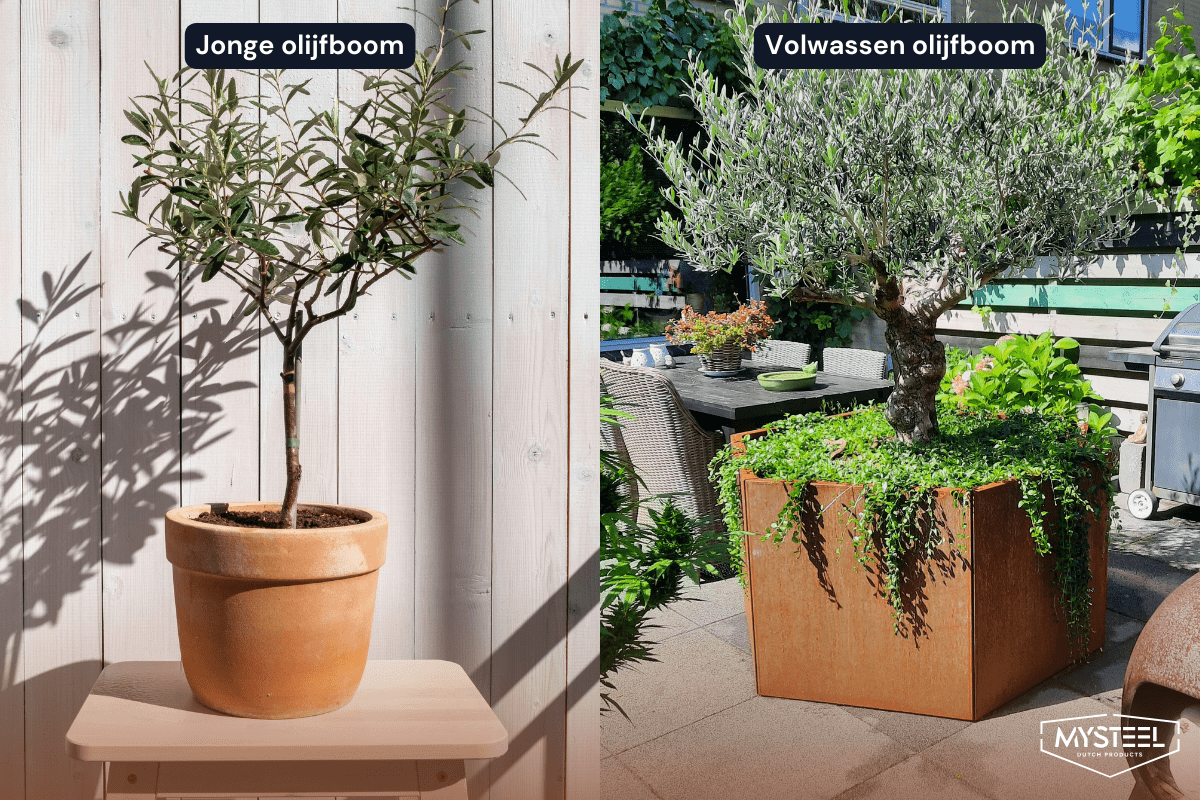 Unge oliventræer er i vækstfasen og kan vokse 30-60 cm hvert år under ideelle forhold. Hvis et ungt oliventræ placeres i en for lille potte, vil det vokse ud af potten efter et par år. Det er vigtigt at følge træets vækst nøje og give det en større potte med tiden. På den måde får træet mulighed for at udvikle sig sundt.