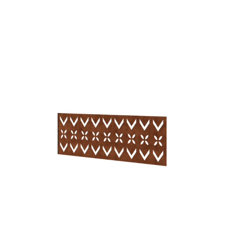 Panelet måler 120 x 47,5 cm og er fremstillet af 2 mm tykt cortenstål. Det leveres som et samlet stykke, så du kan placere det direkte uden ekstra montering, hvilket gør installationen hurtig og nem.