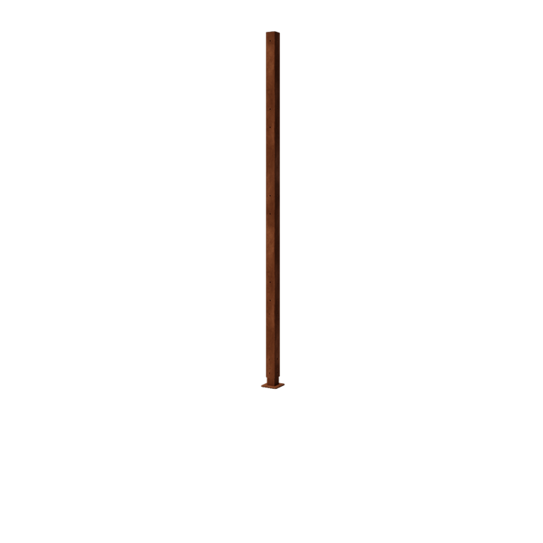 For at fastgøre de cortenstål paneler sikkert, bruger du disse stolper med monteringsfod. Den stålrør kan bøjes i en vinkel. Monteringsfødderne skal fastgøres i jorden med 4 jordankre pr. fod.