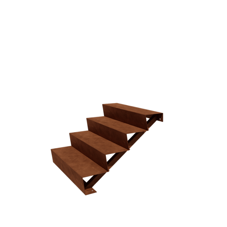 De cortenstalen trappe er opbygget af trin med en højde på 17 cm hver. Trinene er nemme at montere ved hjælp af den medfølgende monteringsvejledning.